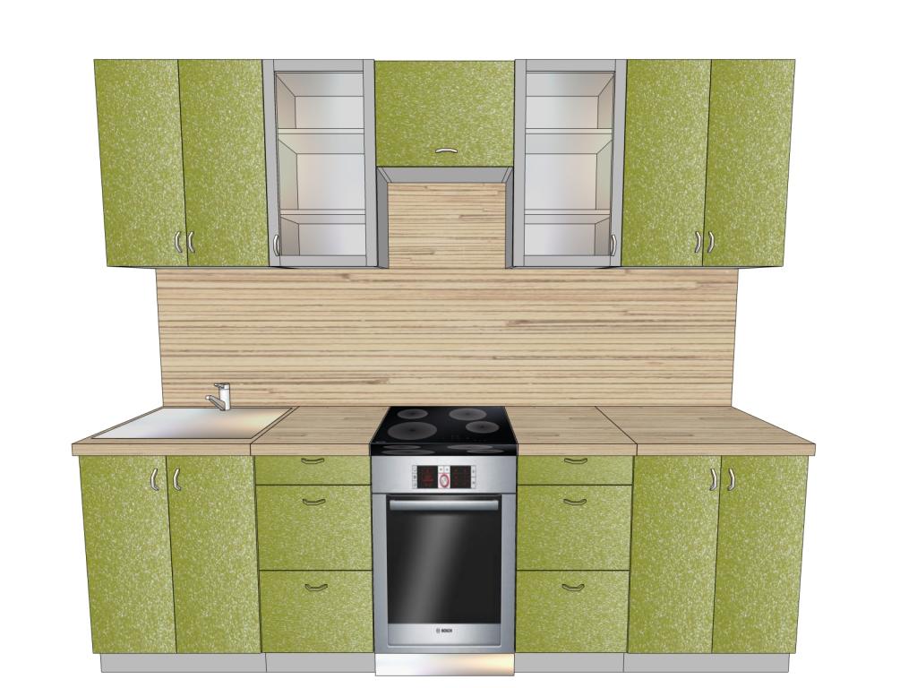 В комплект включены: столешница толщиной 28 мм., стеновая панель, фасады металлик.